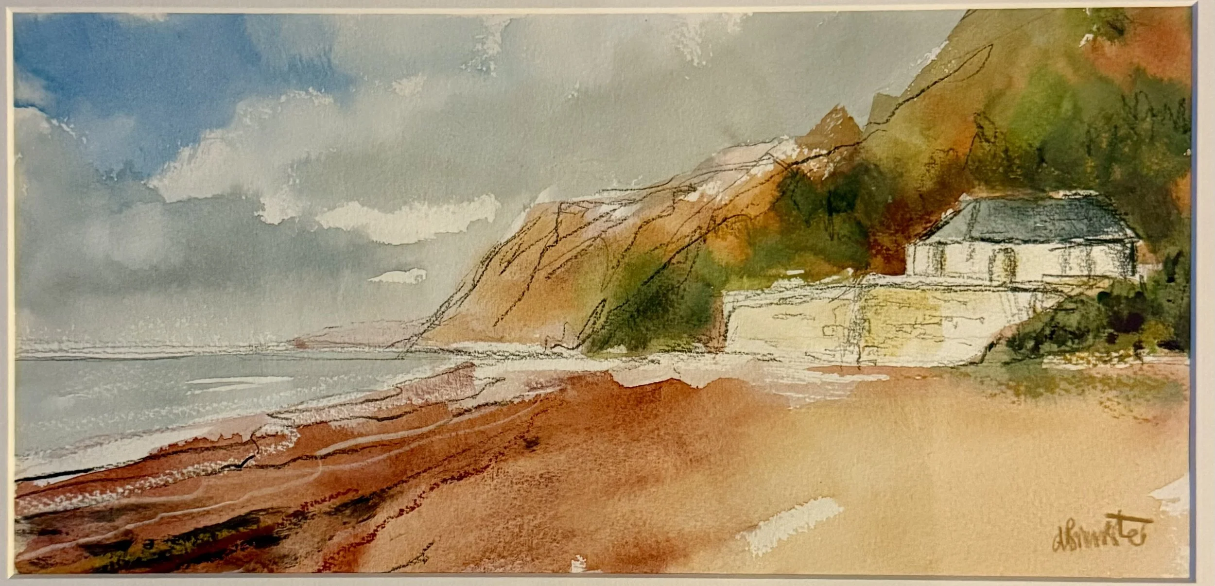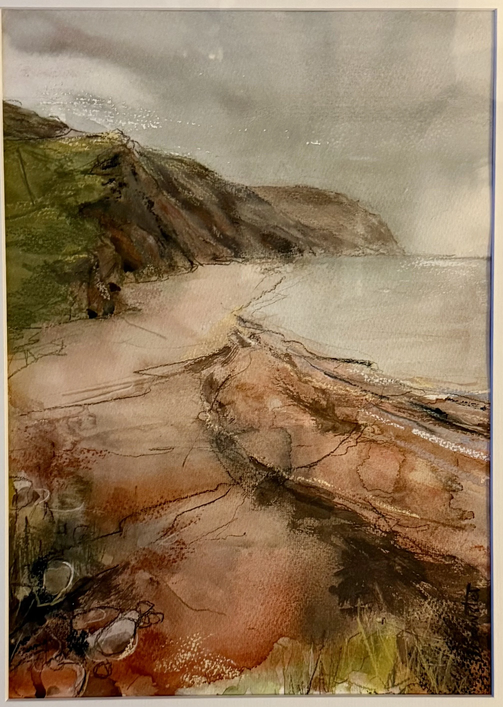 Her practice is very much about the local landscape and seascape and uses watercolours, pastels, pencils and gouache.